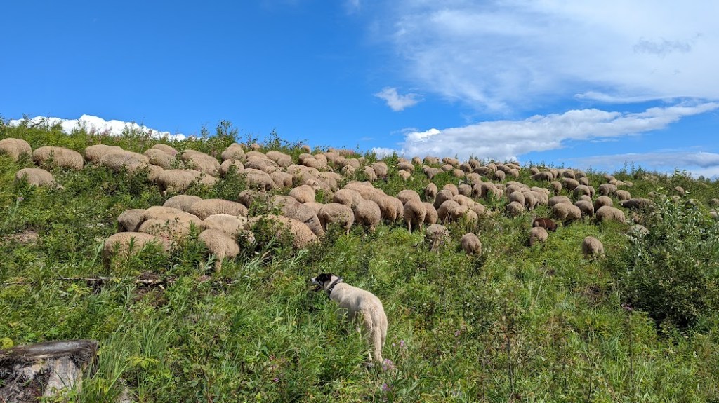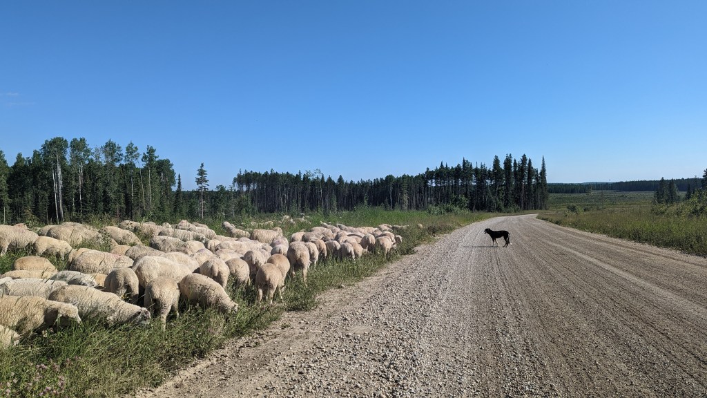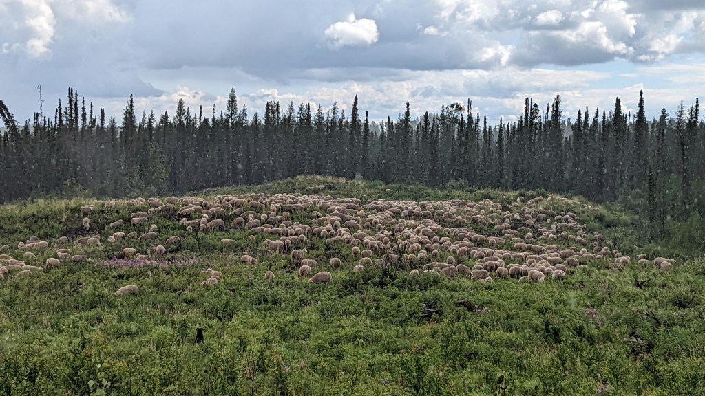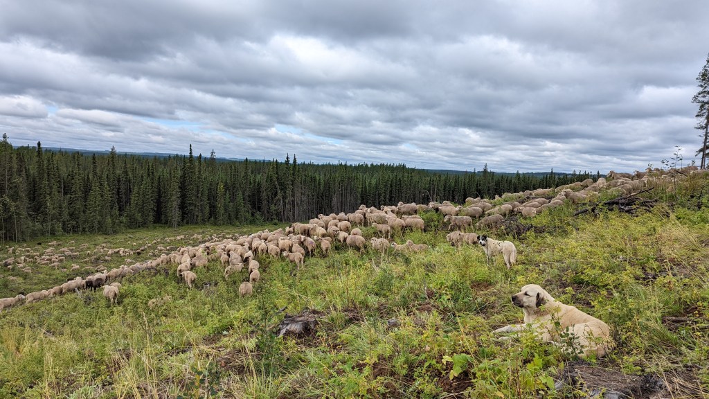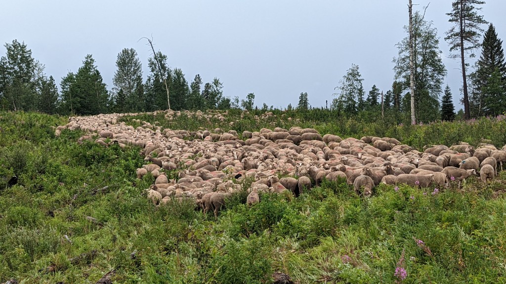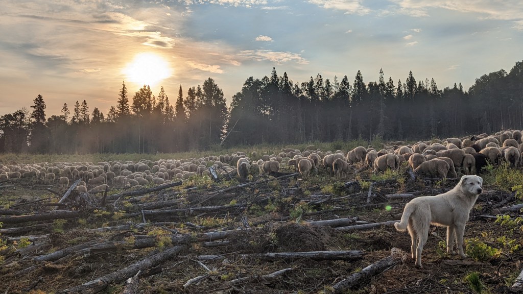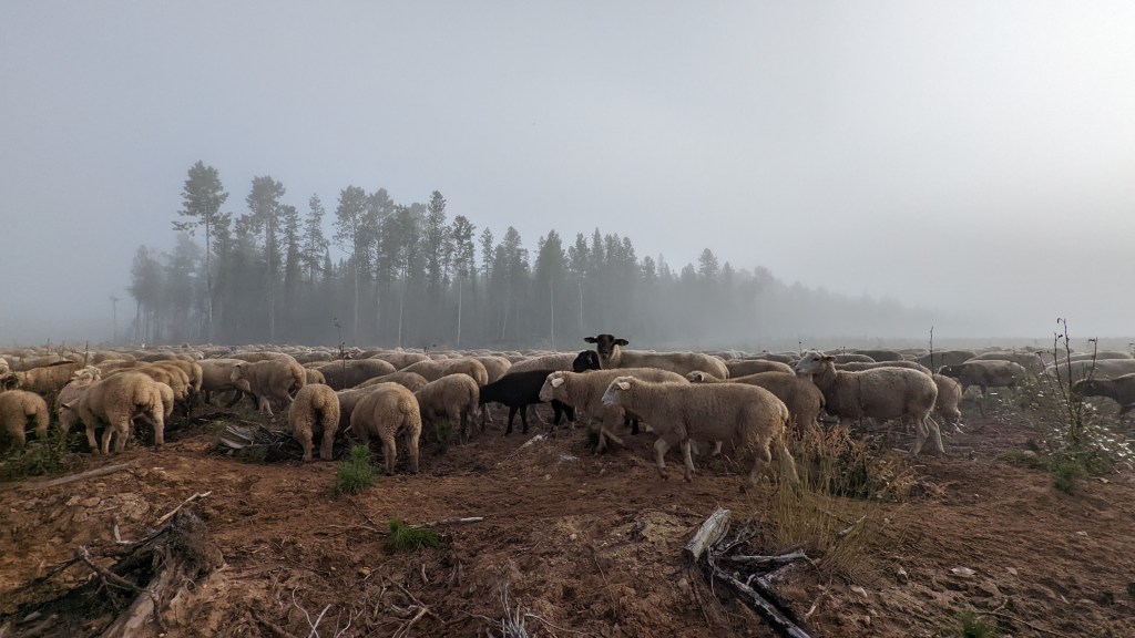 The images on this page were all taken in the summers of 2021 and 2022, at various logging locations around Drayton Valley, Alberta. The ~1200 sheep were circuit grazed on the cutblocks, to manage primary succession species of grass, bushes, and other plants that would outcompete planted forestry saplings for sunlight and space.